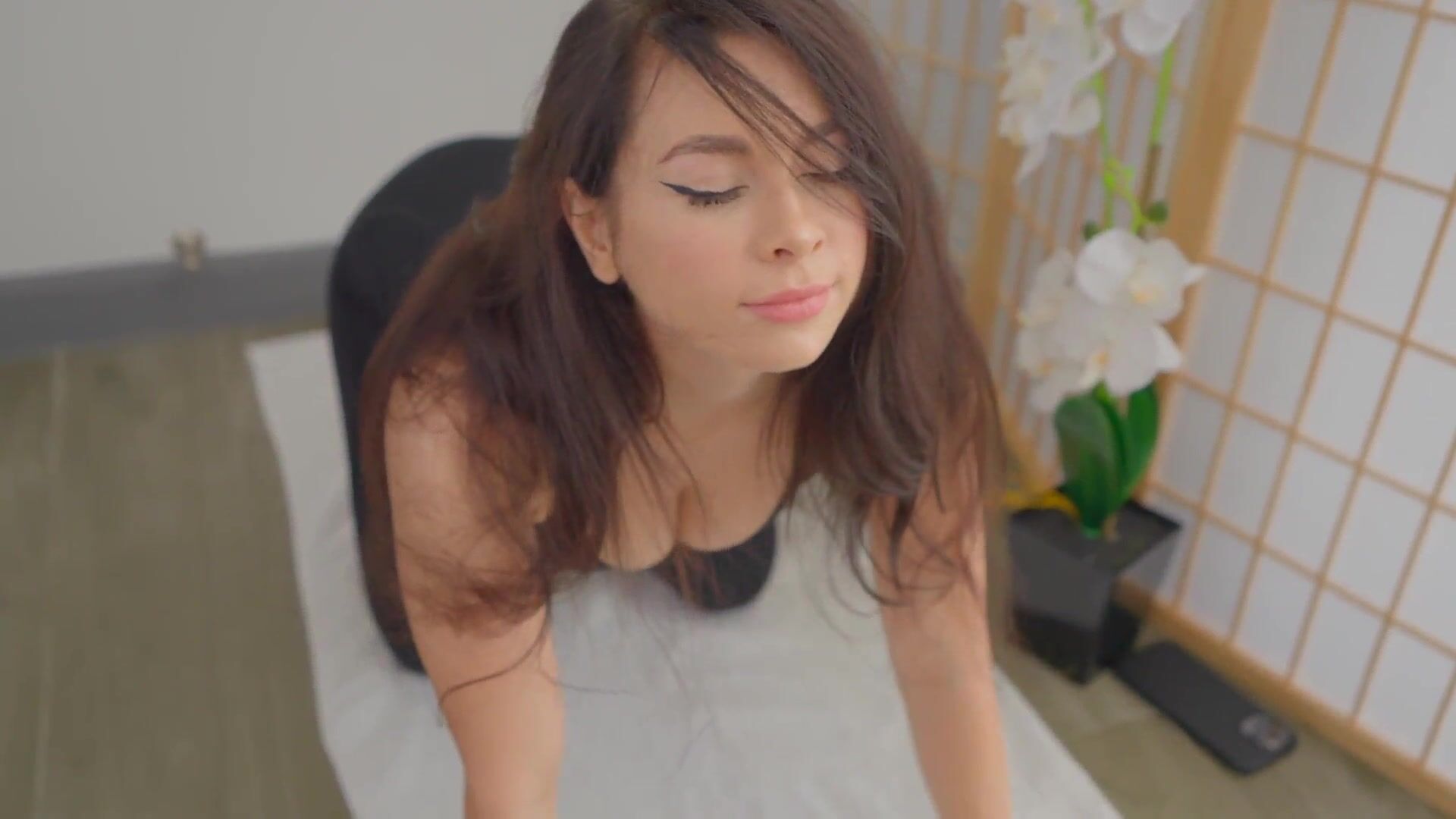 cutie with big tits doing yoga and after that starting masturbate