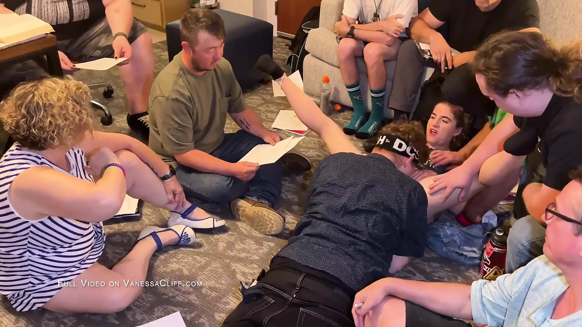A big group of college students is gathered to review for a test on the sociology of sexuality. They find that a little hands-on learning hammers home the lessons. Papers get covered in squirt and cum. Two women in the group line the guys up on the floor and play “musical dicks”, hopping from one guy to the next. Play includes deepthroating, anal, double penetration, and creampies. This class is getting an A+. Cliff Media produces scenes rooted in joyful kink, loving community, healthy non-monogamy, and empowered female and queer sexuality. Find more on Cliff Media's website, vanessacliff.com