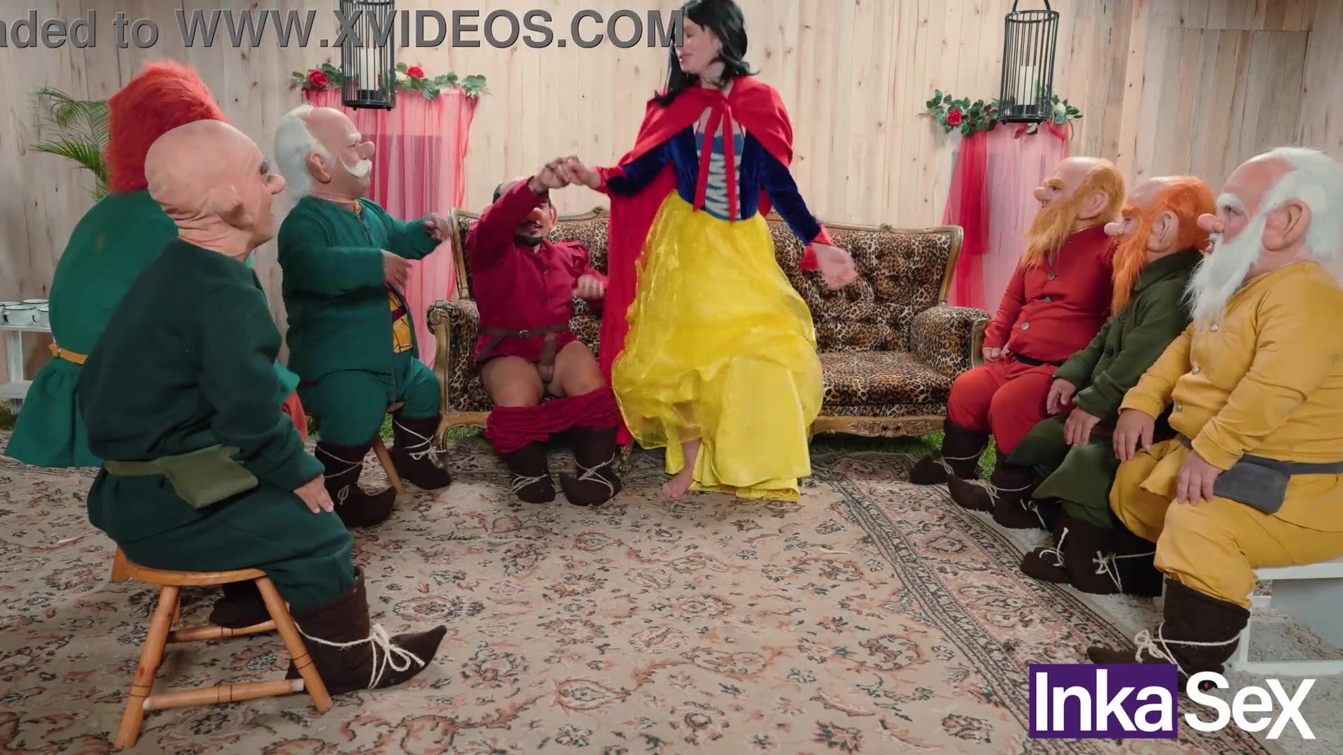 Snow White gets lost in the forest and is fucked by the 7 dwarfs.