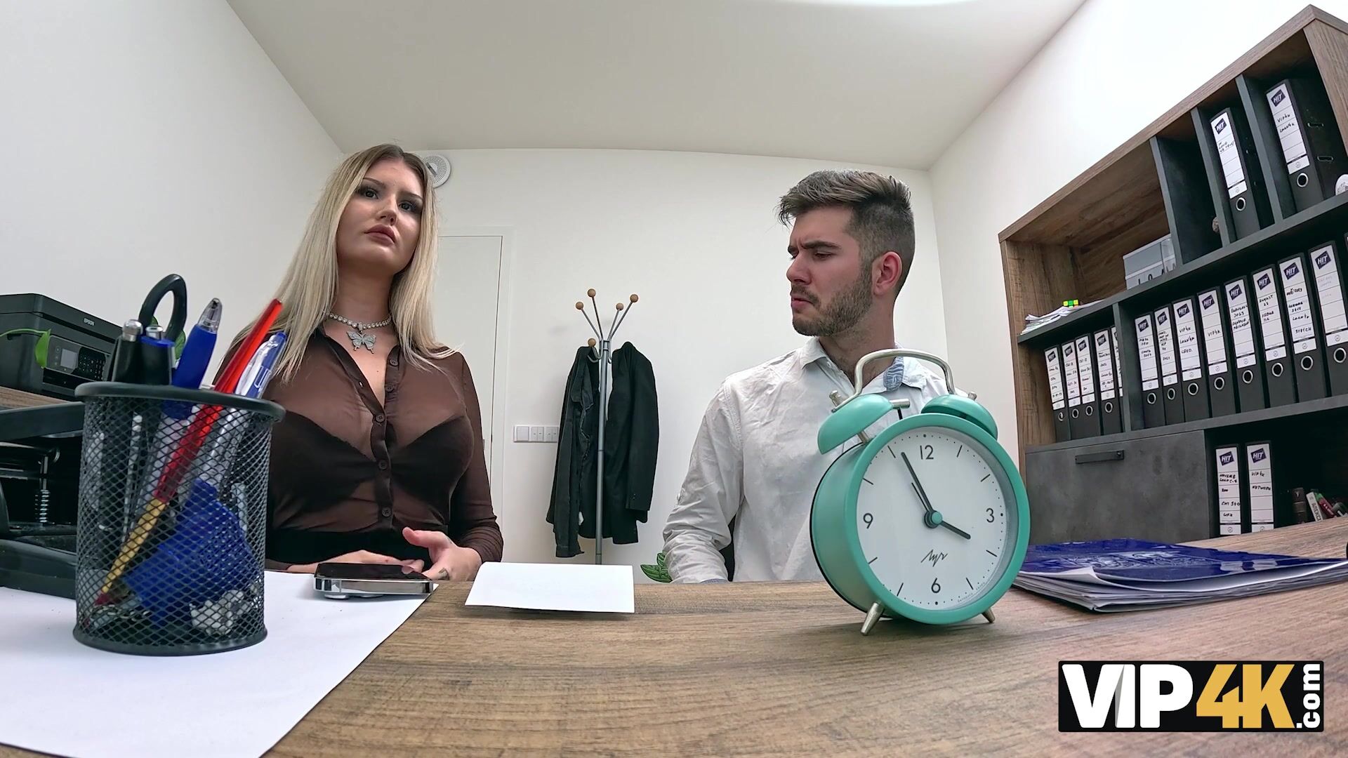 VIP4K. Czech slut wife is showing off her big boobs in the bank while her hubby watching