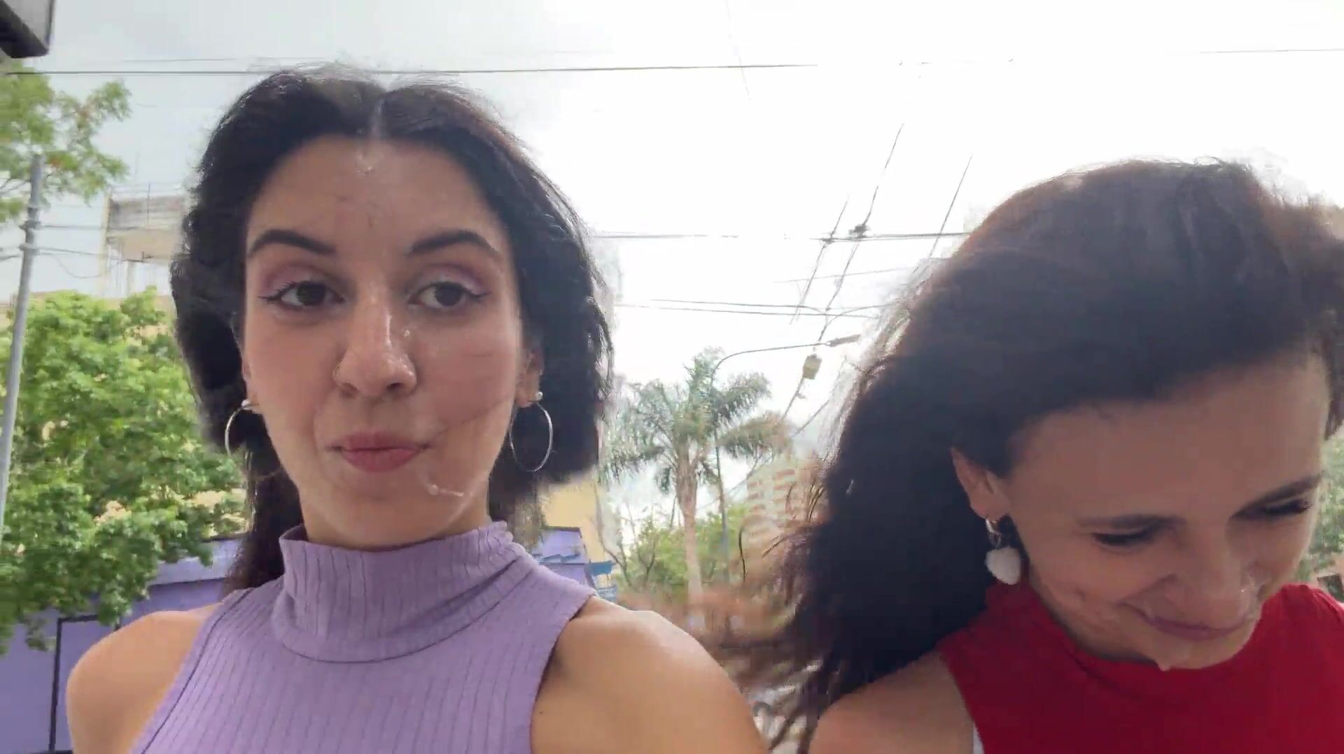 Two neighbors asked me to cum on their faces and went for a walk outside with cum on their faces