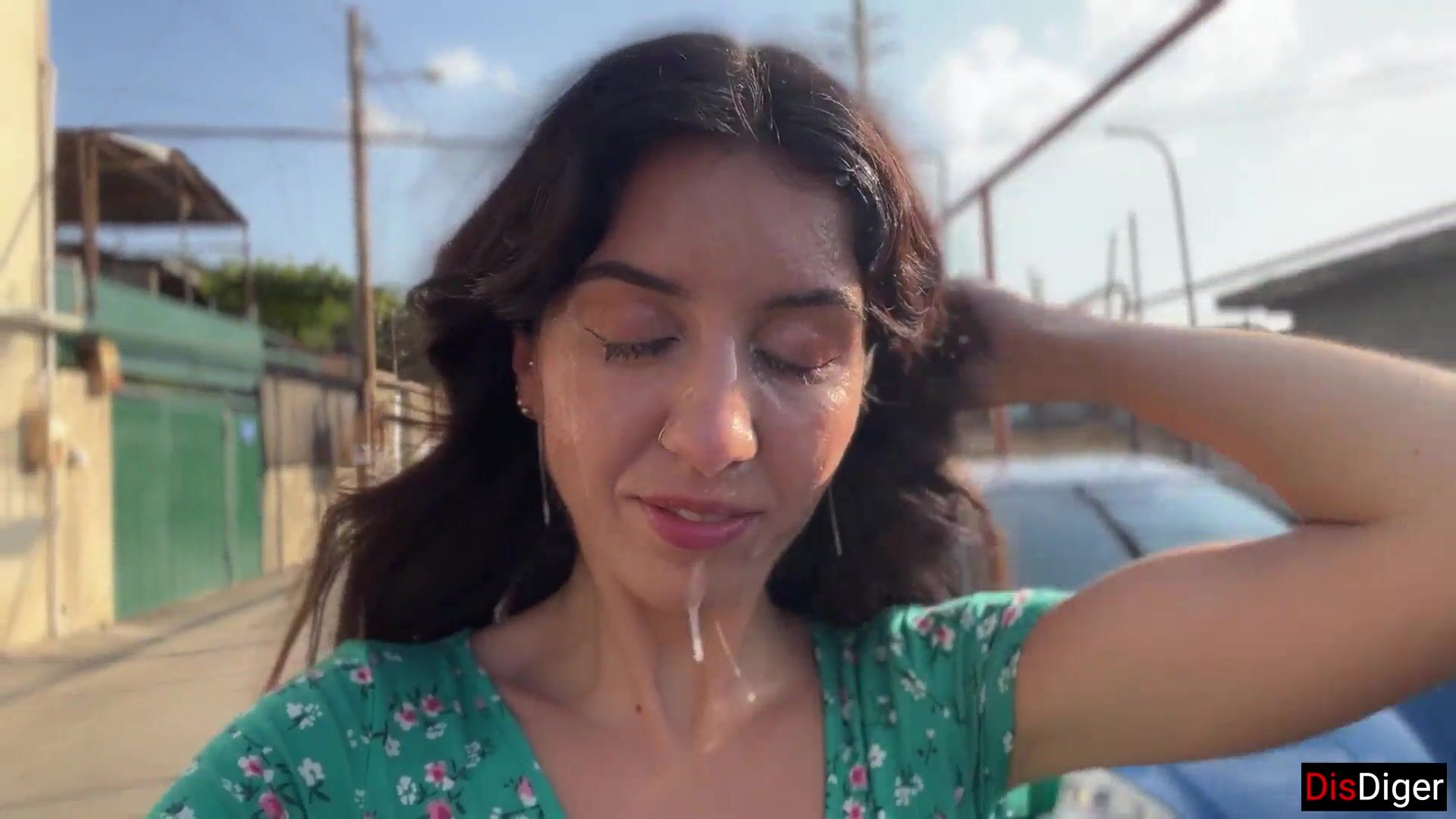 Triple Cum on Face for Village Whore - Public Cumwalk