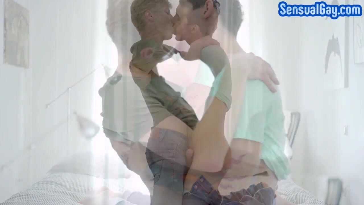 Sensual bareback twinks fuck in couple after erotic kissing