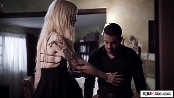 TS Gracie Jane and trans gf barebacks stepbrother in a 3some